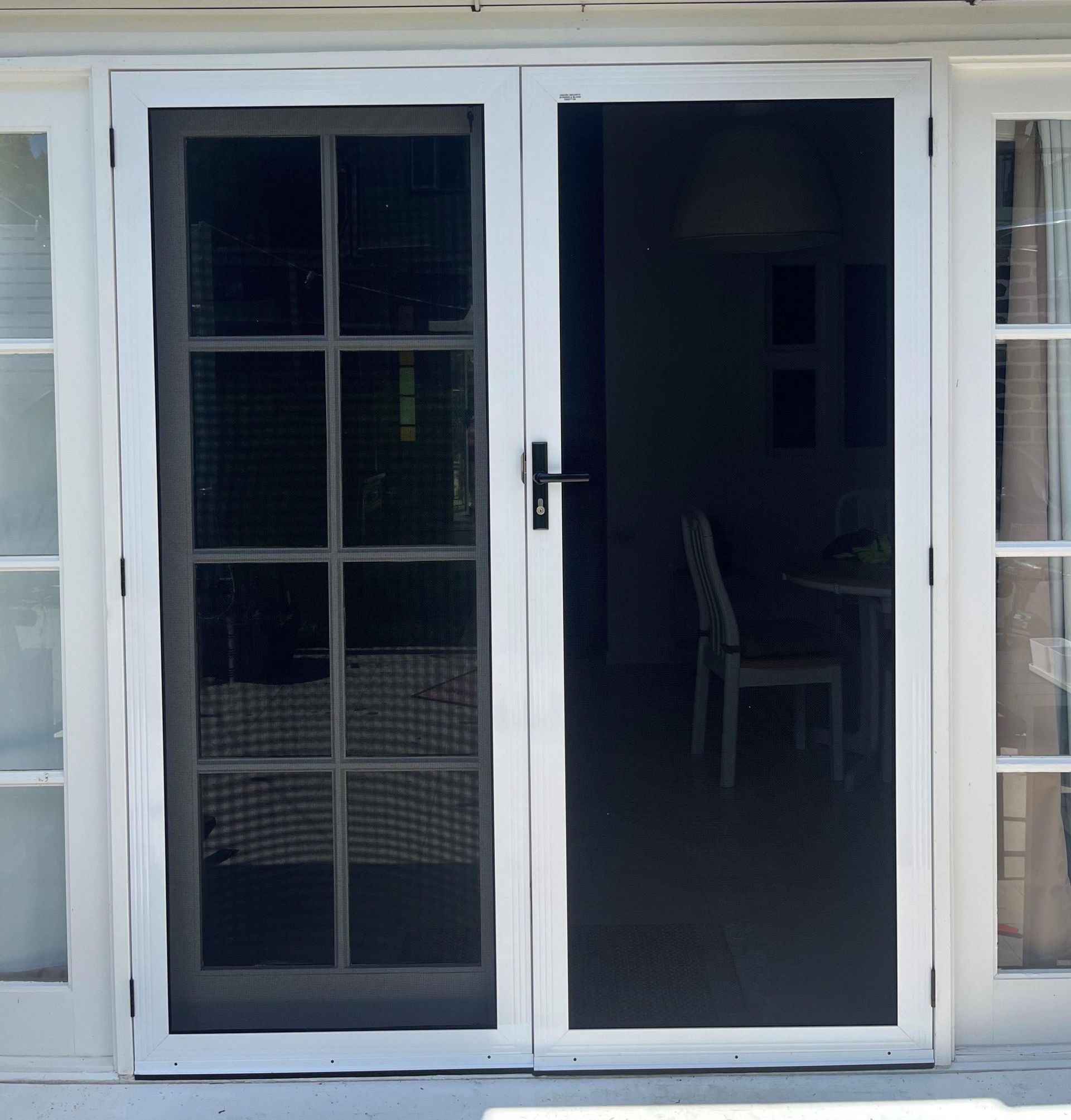 Our security doors and windows feature a 7mm strand thickness and meet the Australian Security Door Standard AS5039. To maximise their benefits, all doors and windows with these grilles should be manufactured in compliance with AS5039 and installed according to AS5040. Additionally, our security doors can be fitted with One-Way Mesh for added privacy. This mesh allows you to see out while reducing visibility into your home from the outside.